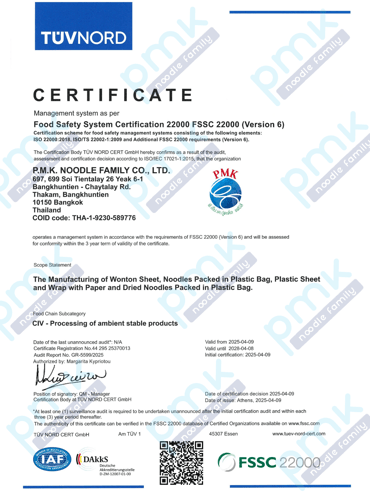 บริษัท พี.เอ็ม.เค. นู้ดเดิ้ล แฟมิลี่ จำกัด697,699 ซอยเทียนทะเล 26 แยก 6-1 ถนนบางขุนเทียน - ชายทะเลแขวงท่าข้าม เขตบางขุนเทียน กรุงเทพฯ 10150