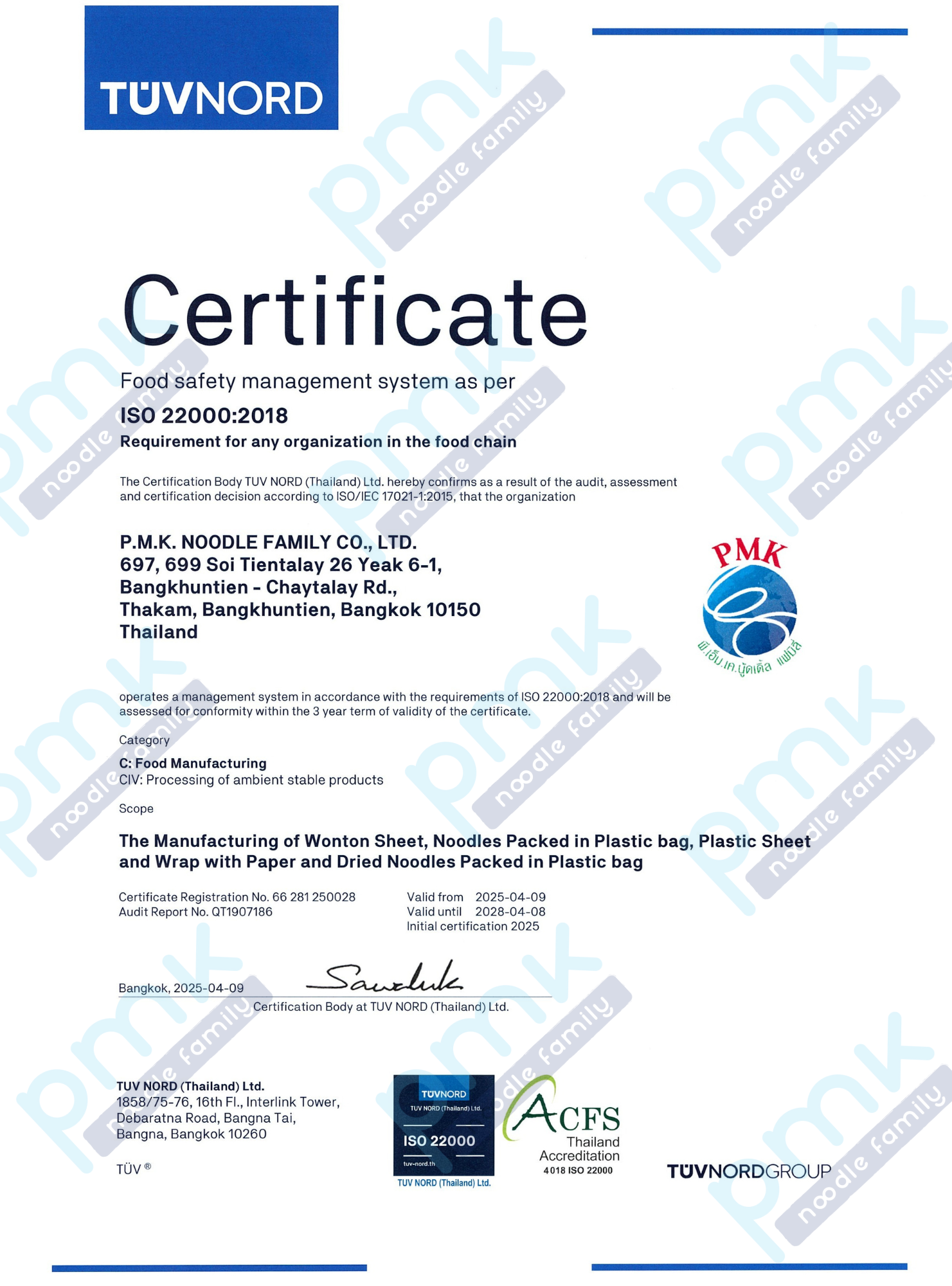บริษัท พี.เอ็ม.เค. นู้ดเดิ้ล แฟมิลี่ จำกัด697,699 ซอยเทียนทะเล 26 แยก 6-1 ถนนบางขุนเทียน - ชายทะเลแขวงท่าข้าม เขตบางขุนเทียน กรุงเทพฯ 10150